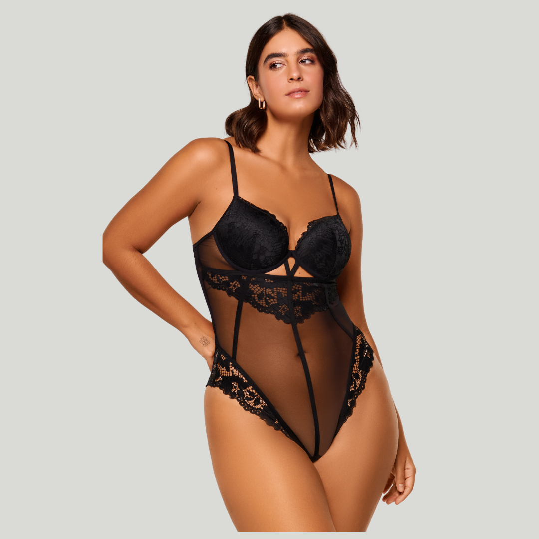 • Busto desenvolvido com modelagem meia taça sem bojo, com arco e forro em microfibra macia para maior conforto