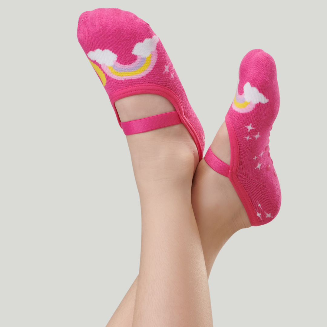 Meia modelo sapatilha com alça, confeccionadas em algodão.