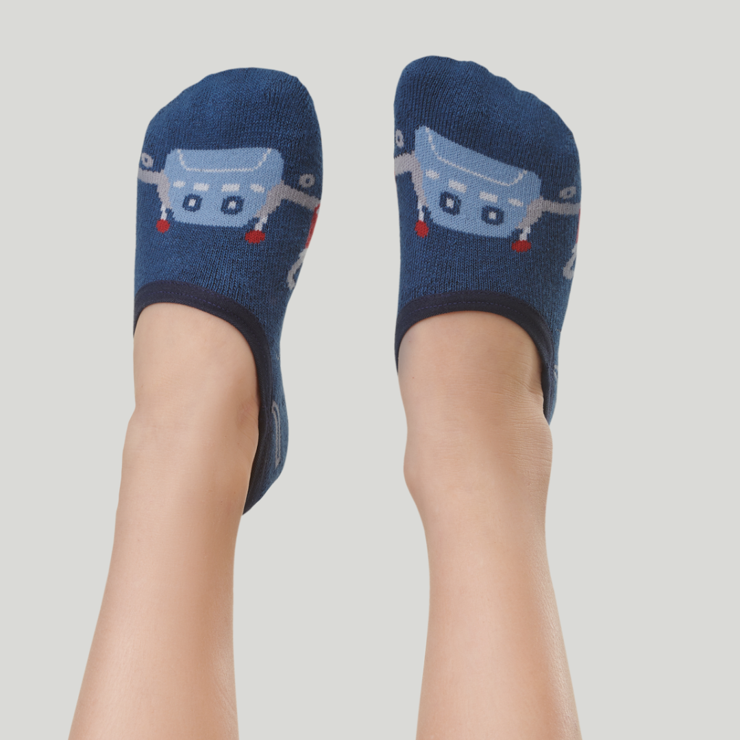 Meia modelo sapatilha com alça, confeccionadas em algodão.